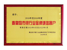 秦皇島市銀行業(yè)金牌誠信客戶