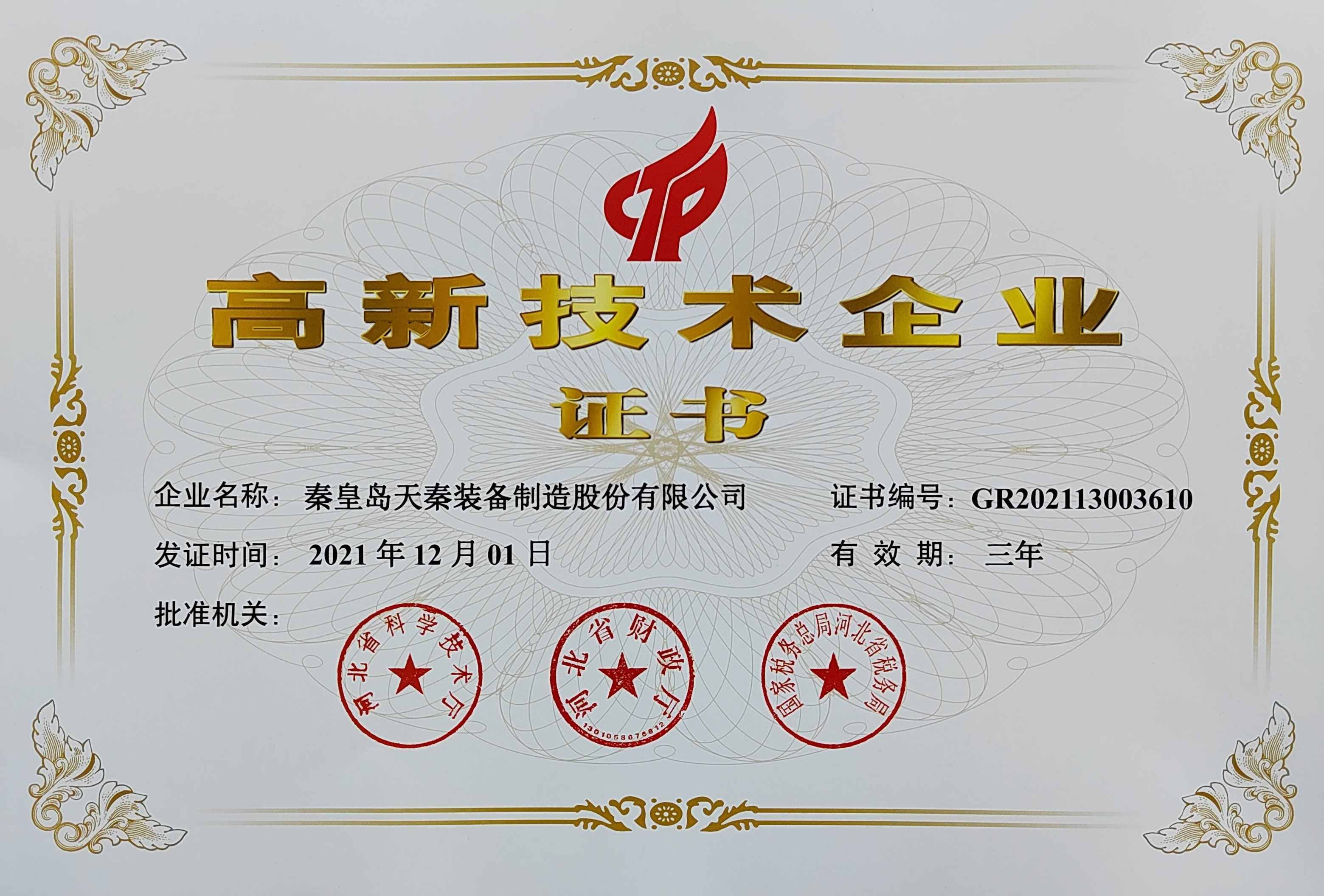 • 秦皇島天秦裝備制造股份有限公司創(chuàng)立于1996年,總部位于河北省秦皇島市經濟技術開發(fā)區(qū),秦皇島廠區(qū)占地4萬平方米,擁有3萬平方米的標準廠房、辦公樓和工程技術研發(fā)中心;分部天津廠區(qū)位于天津市靜海經濟開發(fā)區(qū),占地2萬平方米,擁有1.6萬平方米標準廠房。 公司通過了GB/T 19001質量管理體系及GB/T 24001環(huán)境管理體系認證,是國家高新技術企業(yè)、河北省軍民融合產學研用創(chuàng)建基地,建有省級院士工作站。